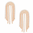 Women's Tassel Earrings. Large Gold Metal Snake Chain and Clear Rhinestone Arched Earrings Featuring Cascading Fringe Tassel Design. Post Backing.