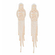 Women's Tassel Earrings. Glam Gold Metal with Clear Rhinestones Oval Shaped Buckle Design Fringe Earrings. Post Backing.