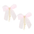 Tassel Pink Ribbon Bow Sparkling Fringe Earrings