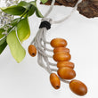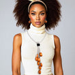 Tassel Silver Mesh Brown Wooden Bead Necklace