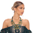 Engraved Burnished Gold Plastic Beads with Teal Stone Beads 3 Row Layered Necklace. Hook Closure. Handcrafted. Fair Trade. Exclusive