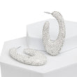Women's Teardrop Earrings. Clear Rhinestone Crystal Crusted White Clay Elongated Teardrop Chunky Open Hoop Earrings. Post Backing.