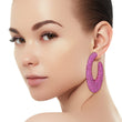 Women's Teardrop Earrings. Dark Fuchsia Purple Rhinestone Crystal Crusted Fuchsia Clay Elongated Teardrop Chunky Open Hoop Earrings. Post Backing.