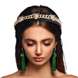 Black Fabric Covered Headband Featuring Designer Inspired Rhinestone and Gold Metal Cuban Chain with Tiger Detailing. Headband measures 1.15 inches wide.