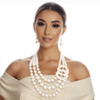 Timeless Opulence: Cream Pearl Layered Necklace Set with Crystal Infinity Ring