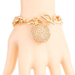 Gold Metal Toggle Chain Bracelet Featuring Topaz Pave Rhinestone Ball Charm. Charm measures 1 inch