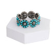Engraved Burnished Silver Metal and TurquoiseTeardrop Beads Flower Pattern Western Boho Stretch Bracelet. Bracelet measures 1 inch wide