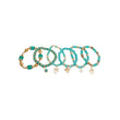 Turquoise and Gold Glass Bead Stretch Bracelet Set Featuring Good Luck Charms Including Elephant, Hamsa, and Evil Eye Charms. 6 Pcs Set