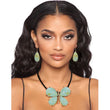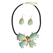 Black Leather Cord Necklace Set Featuring Large Gold Metal and Turquoise Marbled Acrylic Butterfly Slide Pendant. Pendant measures 3.75 inches wide and 3 inches long.