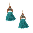 Gold Metal Fish Hook Earrings Featuring Wooden Drop with Turquoise Tassel Detail. Earrings measure 1.15 inches wide.