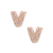 Gold Metal and Rhinestone Initial Letter V Stud Earrings