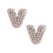 Silver Metal and Rhinestone Initial Letter V Stud Earrings