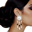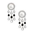 Vintage Inspired Silver Metal and White Pearl Bee Stud Earrings Featuring Clear Rhinestone Detailing Plus Clear and Black Teardrop Crystal Fringe. Earrings measure 1.25 inches wide.
