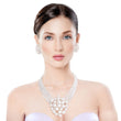 Silver and White Pearl 4 Line Choker Necklace Set Featuring Clustered Pearl and Rhinestone Pendant. Pendant measures 3 inches