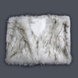 Long Faux Fur Fashion Vest. White with Multi Tone Streaks. Satin like interior lining. 80% Acrylic 20% Polyester. When laid flat, product is 26 inches long and 20 inches wide.