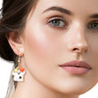 Gold Metal Fish Hook Earrings Featuring White Epoxy Metal Halloween Ghost with Black Star and Charm Details. Earrings measure .7 inches wide.