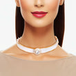 Rigid Gold Metal Casting and White Epoxy Choker Necklace Featuring Designer Greek Medallion and Rhinestone Detail. Choker measures .65 inches wide