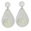 White Ivory Clay Teardrop Flower Bridal Earrings