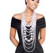 Silver and Chunky White Pearl Long Multi Strand Layered Necklace Set. 10 Layeres with JUmbo Pearls.