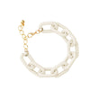 White Rubber Coated Chain Link Bracelet. Gold Metal Adjustable Lobster Clasp Chain with Oval Shaped White Rubber Coated Links. Each Oval Link measures 1" long.