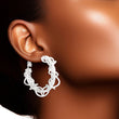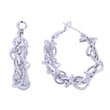 Women's White Gold Hoop Earrings. 14K White Gold Dipped Hypoallergenic Brass Wire Wrapped Chain Design Hoop Earrings. Omega Hoop Closure. 3.58 cm / 1.25 inches Diameter.