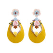 Yellow Teardrop Earrings - Rhinestone & Flower