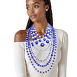 Zeta Phi Beta Sorority Paraphernalia Women's Necklace Set. Long Layered 7 Strand Alternating Blue and White Acrylic Pearl Necklace Featuring Varying Sized Pearls. Layers Measure 16" to 40". Pearls Measure 3.5mm to 24mm. Silver Metal Lobster Clasp Closure. Includes Matching Pearl Ball Stud Post Backing Earrings.